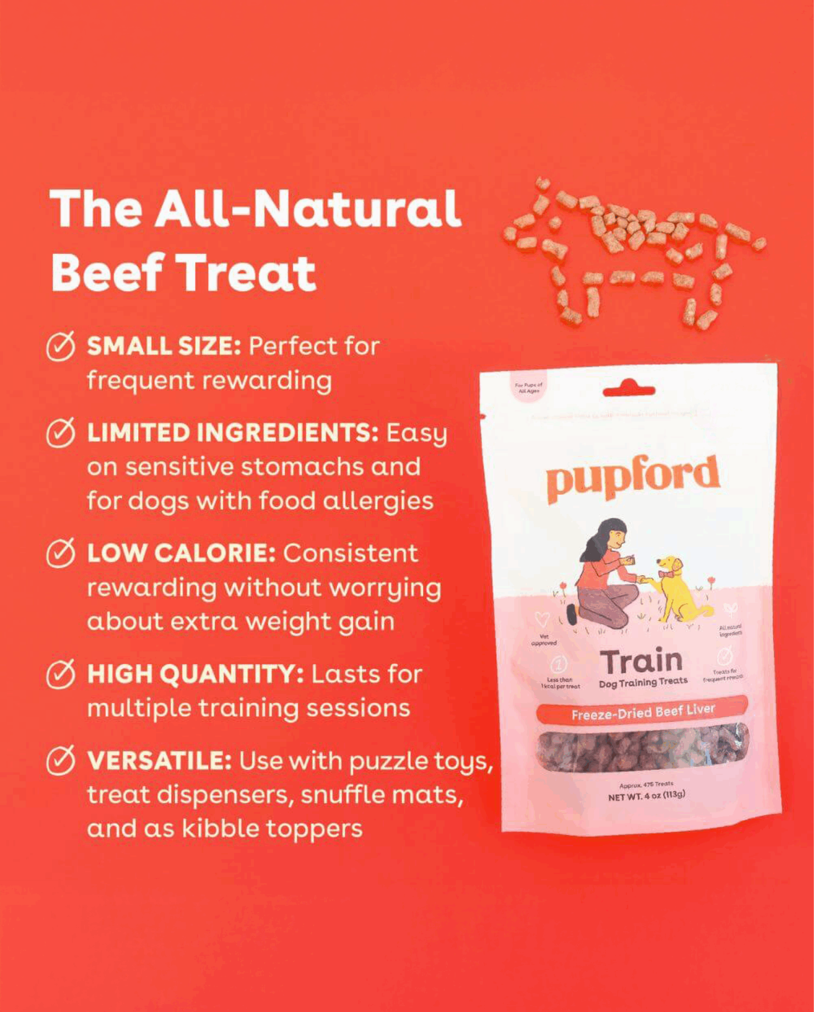 Reward your pups with Pupford premium freeze-dried beef dog treats! Made from 100% natural beef lungs and heart, these treats are perfect for pawzles, training, obedience classes, or just showing some love. Order now and see the joy in your pup's eyes with every bite!