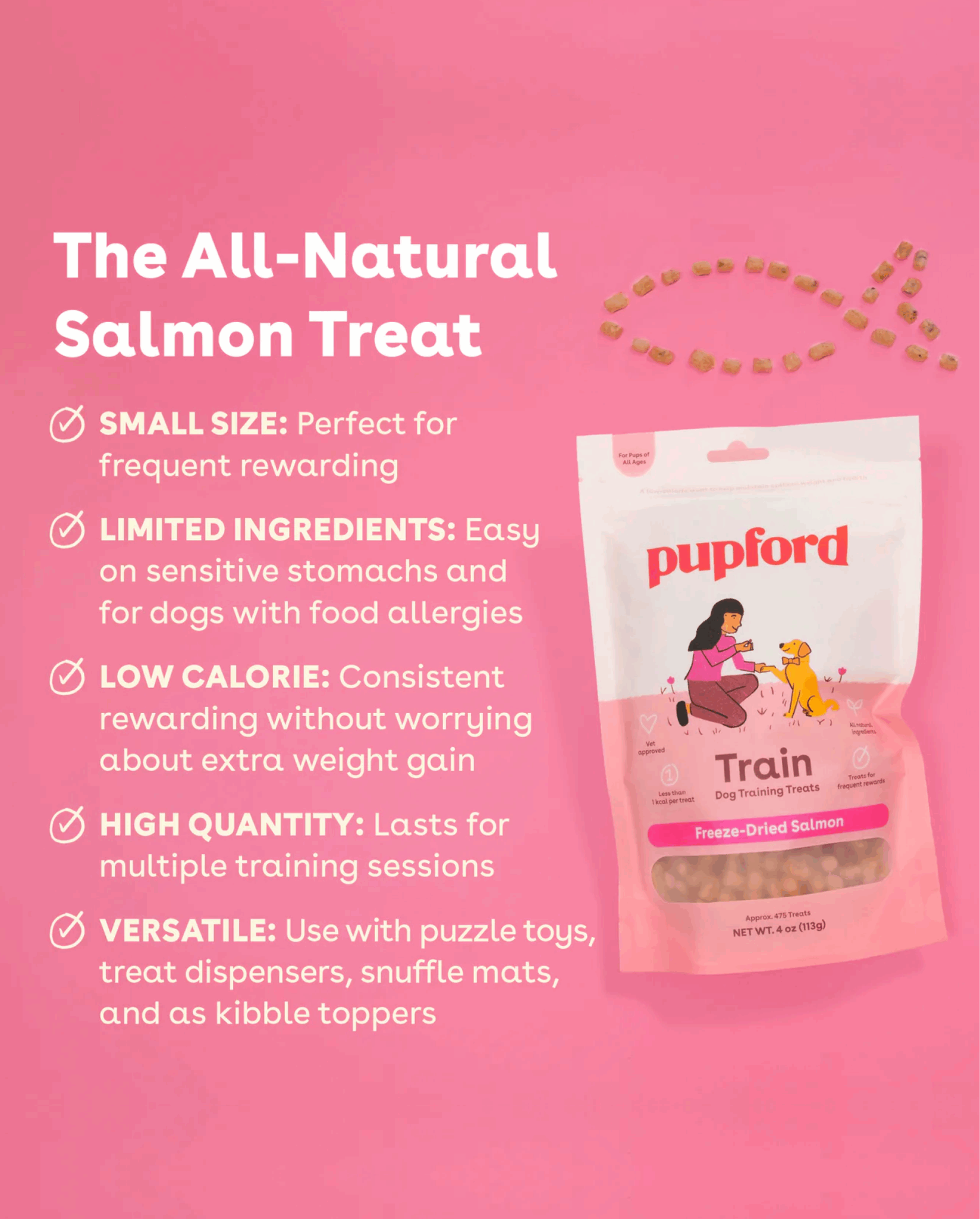 • Reward your pups with Pupford premium freeze-dried salmon dog treats! Made from 100% natural chicken, these treats are perfect for pawzles, training, obedience classes, or just showing some love. Order now and see the joy in your pup's eyes with every bite!